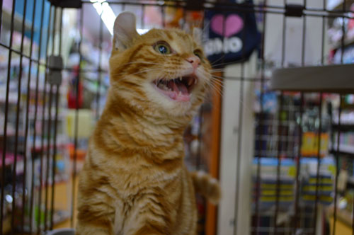 ゲージの隙間から手を出してチョイチョイとお客様にいたずらしてます。